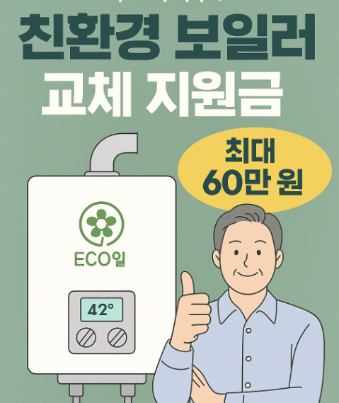 지금 정부와 지자체에서 친환경 보일러 교체 시 최대 60만 원까지 지원금을 받을 수 있는 제도가 운영 중이에요.
