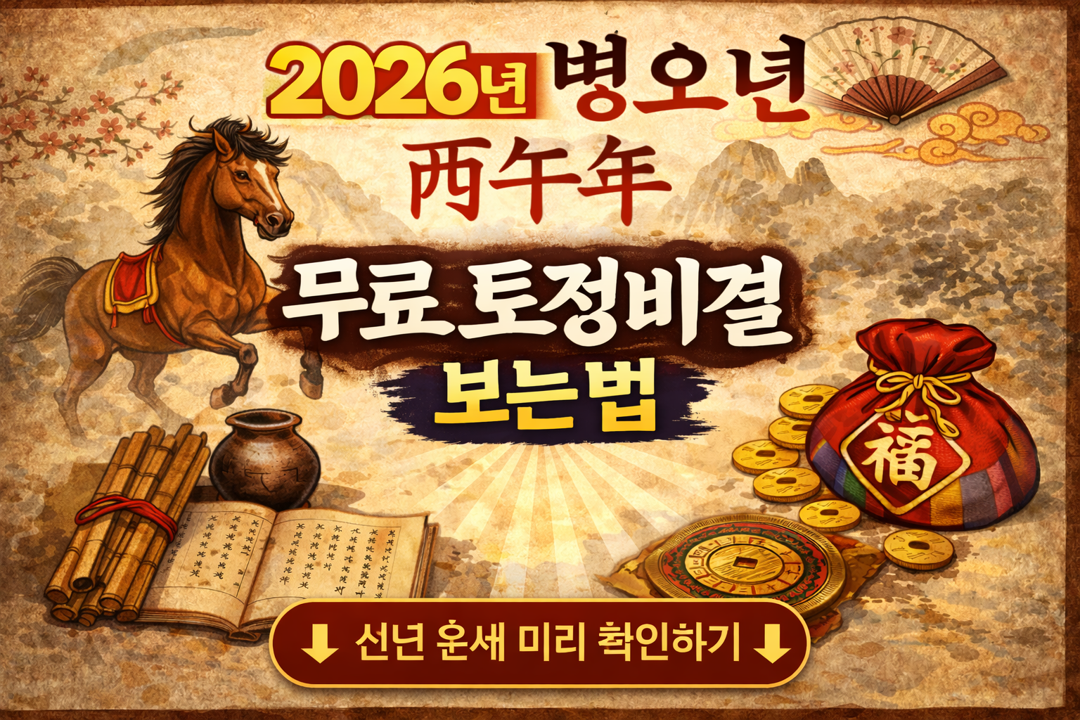 새해를 앞두고 많은 분이 가장 먼저 찾는 단어가 바로 ‘토정비결’입니다. 2026년 병오년(丙午年), 붉은 말의 해를 맞이하여 나의 재물운, 직장운, 건강운이 어떻게 흐를지 미리 파악하는 것은